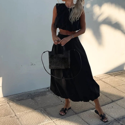 Cropped Sleeveless Top & Midi Skirt 2-Piece Set