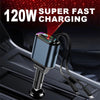 QUAD-PORT FAST CHARGING: Power up to 4 devices simultaneously with dual retractable cables (Type-C/Lightning, 80cm reach) and two USB ports (PD 15W + QC 18W). Charges 50% faster than standard car chargers, perfect for family trips or rideshare drivers.